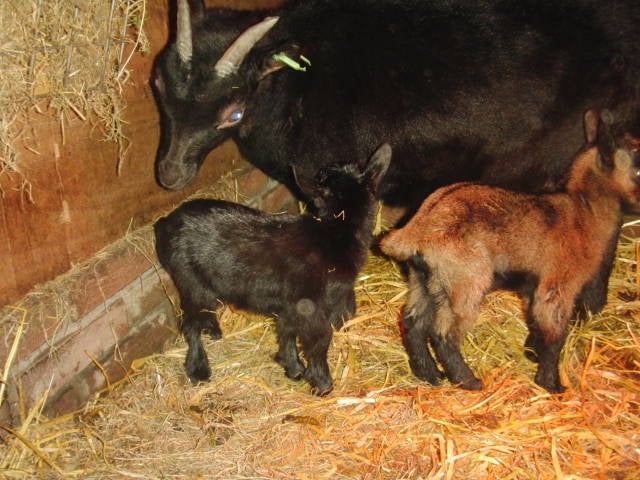 Silja vandaag bevallen van een bruin bokje en een zwart geitje moeder maakt het uitstekend